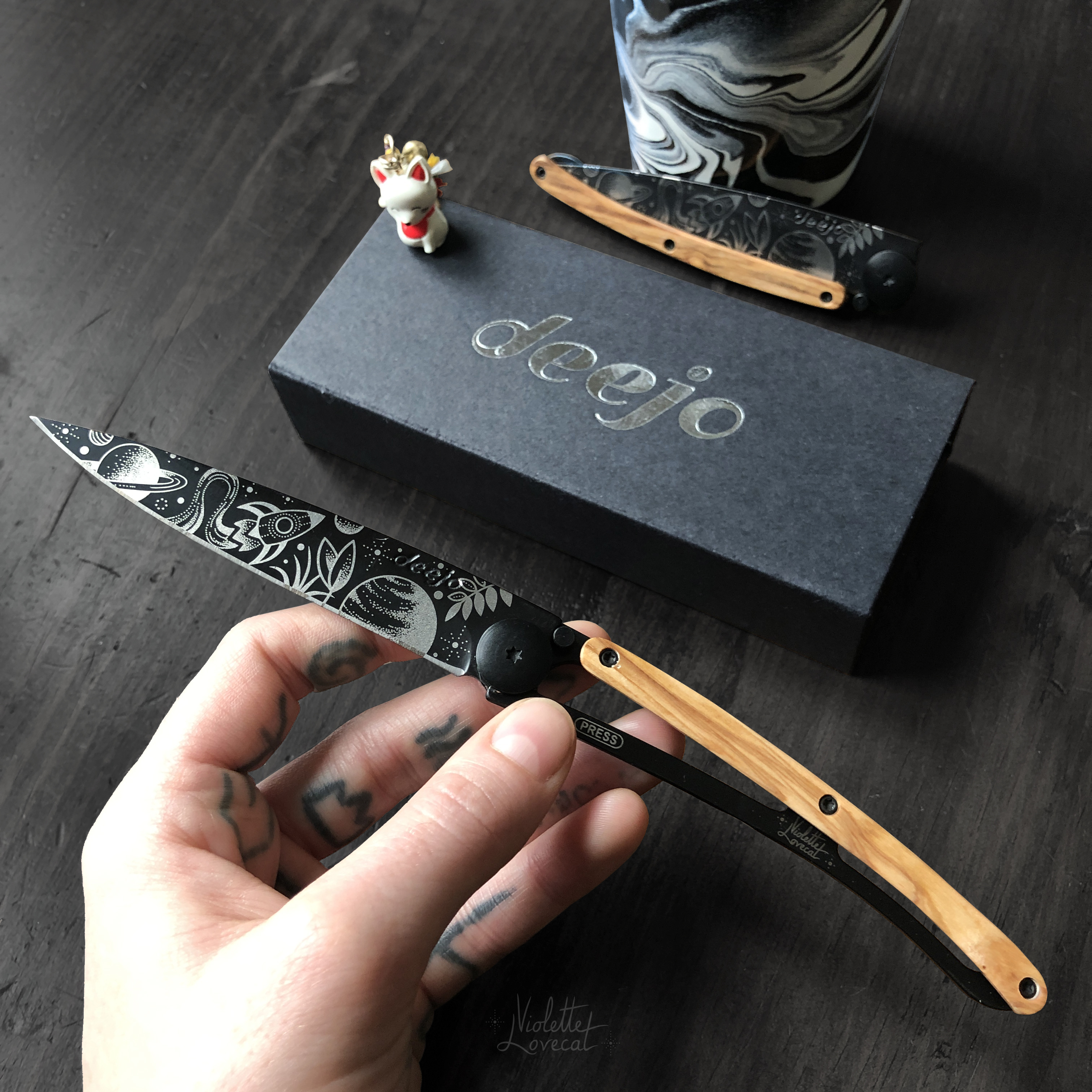 Modèle exclusif en édition limitée. Gravure laser sur lame titane, finition noirs mat.